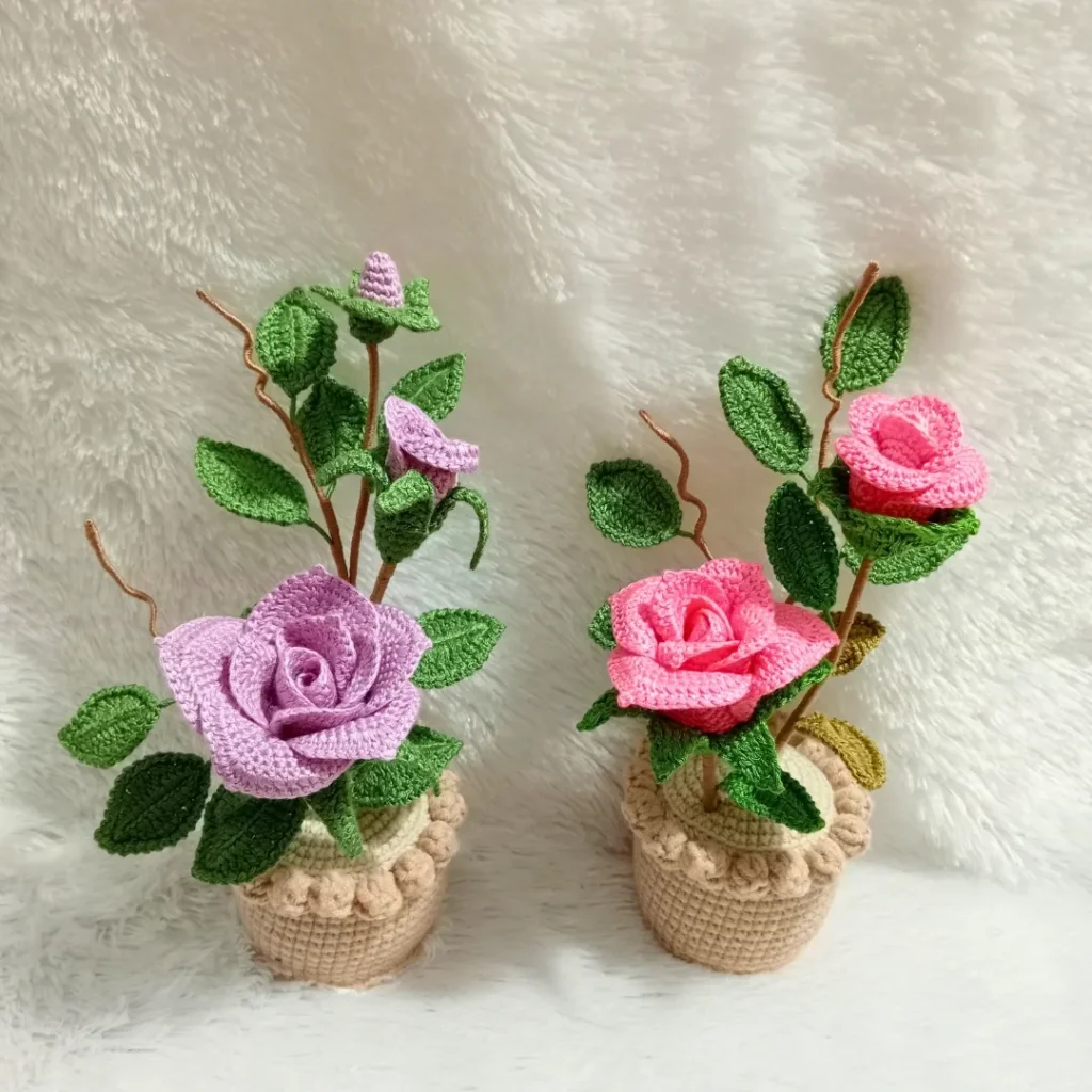 CH-002- Mẫu chậu hoa len dâu tây mini